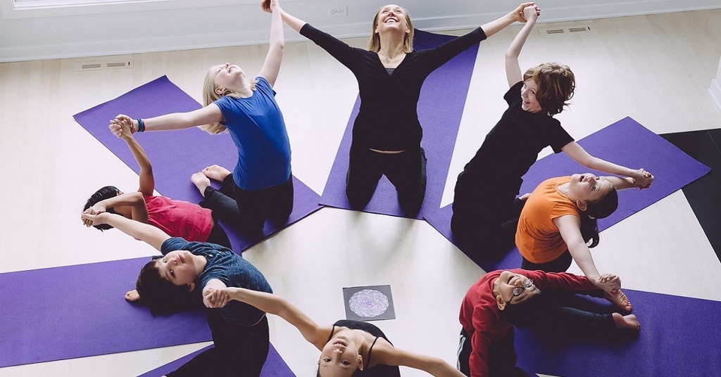 Kneel in a circle, holding hands. As you inhale, reach your arms up, lift your buttocks off your heels, and stretch back arching your back and neck. As you exhale, continue to hold hands and fold down into Child’s Pose. Repeat a few times imagining all the different flowers that you could be.